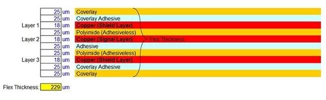銅層屏蔽由額外的蝕刻銅層構(gòu)成,增加了設(shè)計(jì)層數(shù)。 銅層可以是固體平面或交叉陰影,以提高靈活性,但屏蔽能力降低。 如果需要地面拼接,它們需要在柔性區(qū)域中有額外的過孔。