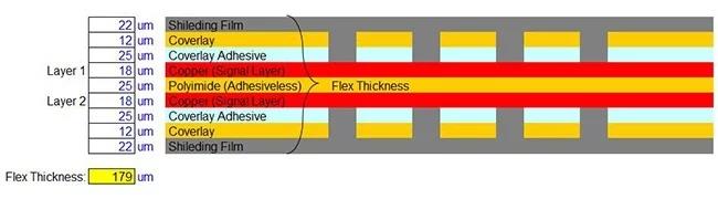 具有屏蔽膜層的2層柔性PCB的示例。