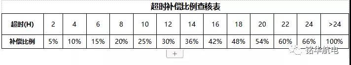 超時之補償金額為超時對應的補償比率與訂單加工金額之積,參照下表: